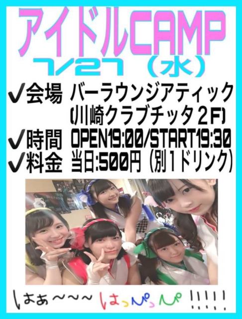 ¡ÖGERU-C³Õ²¼presents¥¢¥¤¥É¥ëCAMP¡× Æü»þ¡§7/27(¿å)19:00¡Á21:30 ²ñ¾ì¡§¥Ð¡¼¥é¥¦¥ó¥¸ ¥¢¥Æ¥£¥Ã¥¯ (Àîºê¥¯¥é¥Ö¥Á¥Ã¥¿£²F) ÎÁ¶â¡§500±ß(DÊÌ) ½Ð±é¡§ LIVEͽÌó¥Õ¥©¡¼¥à¡§goo.gl/VcE1pN