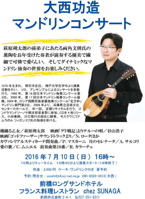 7月10日には群馬県前橋市で師匠のコンサートがあります。 播磨國住人 韃靼人