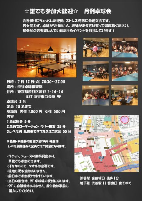 ²ñ¼Òµ¢¤ê¤Ë¤Á¤ç¤Ã¤È¤·¤¿±¿Æ°¡¢¥¹¥È¥ì¥¹È¯»¶¤ËºÇŬ¤Ê²ñ¤Ç¤¹¡£ Ã˽÷Ìä¤ï¤º¡¢Âîµå¤¬¤ä¤ê¤¿¤¤¿Í¡¢¶½Ì£¤¬¤¢¤ëÊý¤Ïʳ¤Ã¤Æ¸æ±þÊ礯¤À¤µ¤¤¡£ ¤´Ìµº»ÂÁ¿¶¤ê¤Ë³«ºÅ¡£ ½é»²²Ã¤ÎÊý¤â³Ú¤·¤ó¤Ç¤¤¤¿¤À¤±¤ë¥¤¥Ù¥ó¥È¤òÌܻؤ·¤Æ¤¤¤Þ¤¹¡£¢ö Æü»þ¡§7·î12Æü(²Ð) 20:30¡Á22:00 ¾ì½ê¡§½ÂëÂîµå¶æ³ÚÉô ½»½ê¡§ÅìµþÅÔ½Âë¶è½Âë1-14-14 EST½ÂëÅì¸ý²ñ´Û 9F ½Âë±Ø µÜ±×ºä¸ýÅÌÊ⣱ʬ Ãϲ¼Å´ ½Âë±Ø11Èֽиý ½Ð¤Æ¤¹¤° ÂîµåÂæ 3Âæ Äê°÷¡¡18̾ »²²ÃÈñ ÃËÀ 1,000±ß¡¡½÷À 500±ß ÆâÍÆ 1.¼«¸Ê¾Ò²ð 5ʬ 2.Á´°÷¤Ç¥í¡¼¥Æ¡¼¥·¥ç¥ó ¥é¥ê¡¼Îý½¬ 30ʬ 3