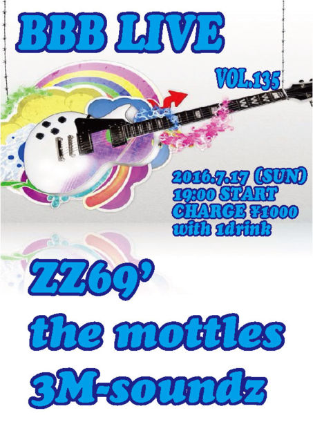 BBB LIVE 135 2016.7.17 (SUN) 19:00 START CHARGE \1000 (w/ 1drink) ¡ù¡¡ZZ69' ¡ù¡¡the mottles ¡ù¡¡3M-soundz