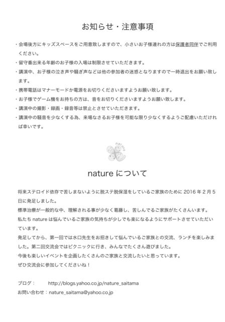 佐藤先生ご夫妻はいらっしゃいませんが、 水口先生と藤澤先生がご講話されます。 事前申込制で残り30名程度とのことですので、 お早めにお申し込みください。 http://blogs.yahoo.co.jp/nature_saitama/41190515.html (ボランティアスタッフの募集は締め切ったそうです)