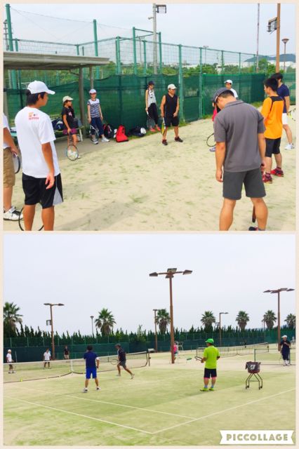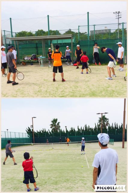 8月14日(日曜日)垂水テニス教室 14時〜17時の3時間 参加費600円〜中学生以下は無料 初級、中級のコート2面に分かれて それぞれボランティアコーチが 丁寧に指導致します