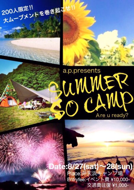 a.p.presents SUMMER SO CAMP ¡Á200¿Í¸ÂÄêÂç¥à¡¼¥Ö¥á¥ó¥È¤ò´¬¤µ¯¤³¤»¡ª¡ª¡Á ³§ÍÍ¡¢Æü¡¹½ë¤¯¤Ê¤ëº£Æü¤³¤Îº¢¤¤¤«¤¬¤ª²á¤´¤·¤Ç¤·¤ç¤¦¤«¡© 2016ǯ²Æ Ëèǯ·è¤Þ¤Ã¤Æ²Æ¤ÏÍè¤Þ¤¹¤¬¡¢2016ǯ¤Î²Æ¤Ï¤³¤Î1²ó¤¤ê¤Ç¤¹💕 2016ǯ¤Î²Æ¤Î½ª¤ï¤ê¤Ë½¸¤Þ¤Ã¤¿200¿Í¤Î¡¢¤½¤ÎÂ礤ÊÎϤÇÂç¥à¡¼¥Ö¥á¥ó¥È¤ò´¬¤µ¯¤³¤·¡Ø¤¤¤Ä¤â¤È°ã¤¦Ëº¤ì¤é¤ì¤Ê¤¤ºÇ¹â¤Î²Æ¡Ù¤Ë °ì½Ö¤·¤«¤Ê¤¤¤³¤Î»þ´Ö¤ò¤ï¤¿¤·¤¿¤Áa.p.¤¬ºÇ¹¬¤Ê»þ´¶¤ËÊѤ¨¤µ¤»¤ÆÄº¤¤Þ¤¹ Are u ready ¤³