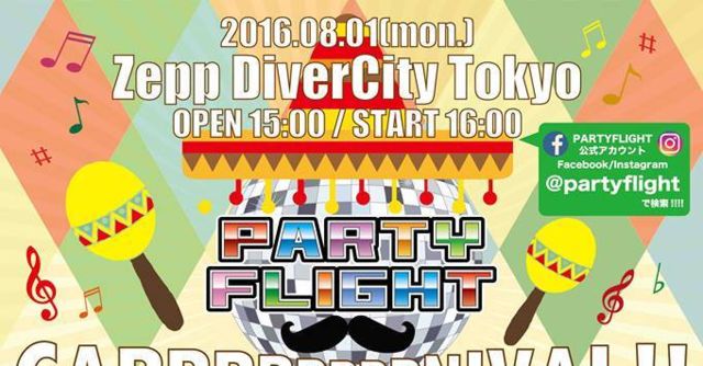 ¡ÖPARTY FLIGHT¡× http://partyflight.jp/ Æü»þ¡§8/1(·î) ³«¾ì15:00 ³«±é16:00 ²ñ¾ì¡§Zepp DiverCity Tokyo ÅìµþÅÔ¹¾Åì¶èÀij¤ 1-1-10 ¥À¥¤¥Ð¡¼¥·¥Æ¥£Åìµþ¥×¥é¥¶ ÎÁ¶â¡§ ¡ã¥¹¥¿¥ó¥Ç¥£¥ó¥°¡ä Á°Çä 4,320±ß ÅöÆü 4,820±ß ¡ã»ØÄêÀʡ䢨Á°Ç䡦ÅöÆü¶¦ÄÌ SÀÊ 6,480±ß AÀÊ 5,400±ß ¢¨»ØÄêÀʤÏSÀʤ¬1³¬¥¹¥Æ¡¼¥¸Á°¡¢AÀʤ¬2³¬¤È¤Ê¤ê¤Þ¤¹¡£ ¢¨¥Á¥±¥Ã¥È¤Ï3ºÐ¤Î¤ª»ÒÍͤ«¤éɬÍפȤʤê¤Þ¤¹¡£ ¥¤¡¼¥×¥é¥¹¡§http://eplus.jp/sys/T1U89P0101P006001P0050001P002190115P0030001P0006 ½Ð±é¡§jealkb¡¿M!LK¡¿¡Ä