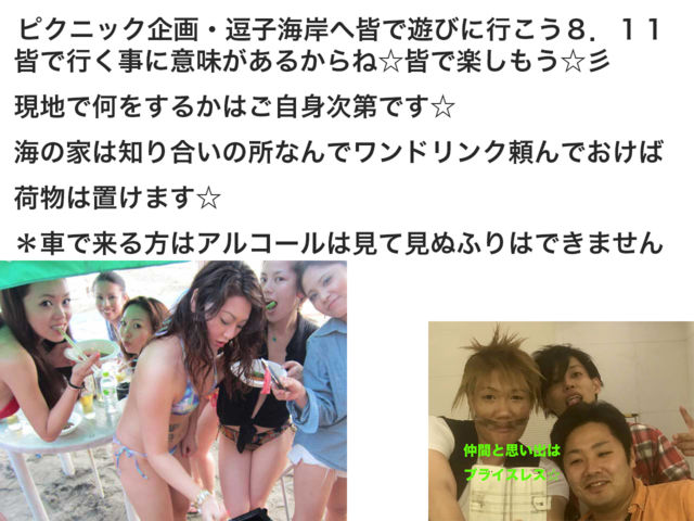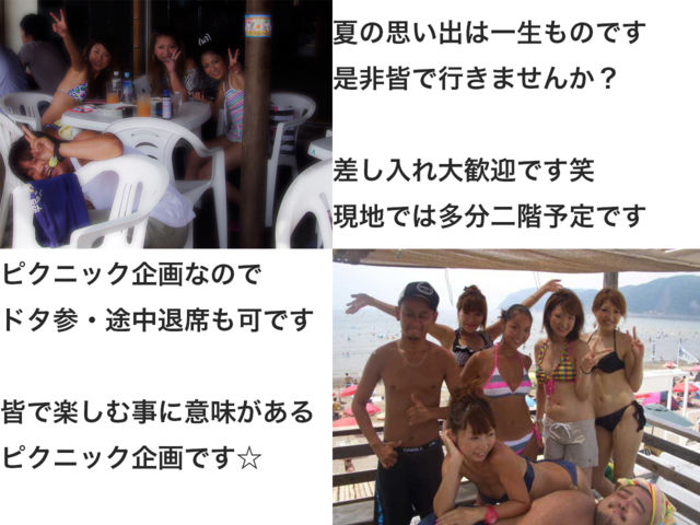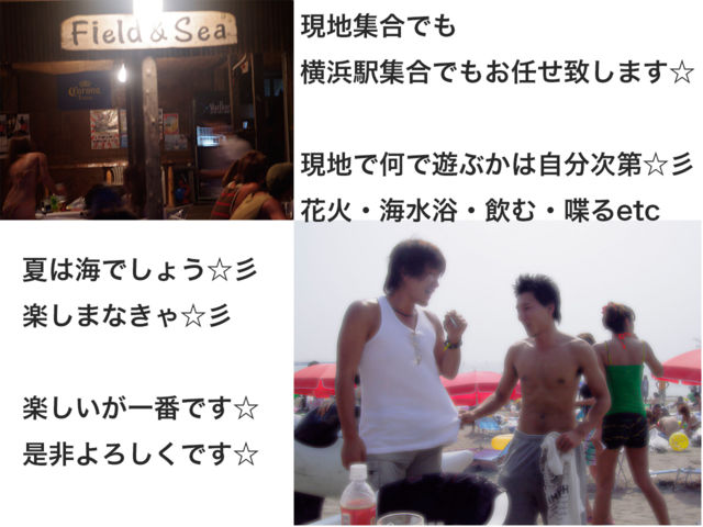 ○8/11(祝日)皆で逗子海岸に遊びに行こう☆彡ピクニック企画だから会費は無料、お子さん連れも大歓迎☆彡 ピクニック企画です☆みんな逗子海岸にいこぉ☆ ピクニック企画だから会費はとりません☆彡 ● いきなりは不安て方は、参加者さん用のLineぐるちゃもあります☆彡 参加表明から、当日まで、そこでどんな雰囲気かわかってもらえるかと思います☆彡 希望者のみですので、管理人までお問い合わせ下さいね☆彡 ● 会費 ピクニック企画なので会費はありません 逗子海岸で、ご自身が使った分だけ自分で支払う いたってシンプ