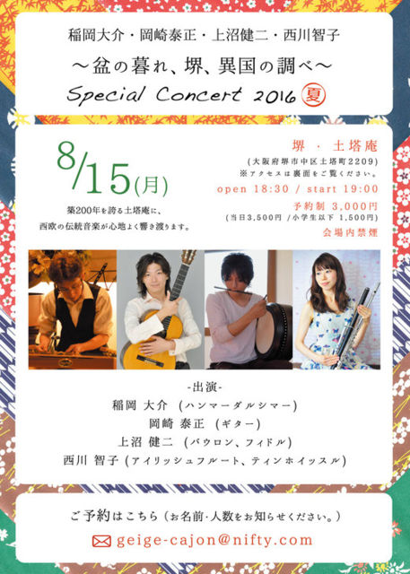 ÂçÊÑÁÇÀ²¤é¤·¤¤²»³Ú²È¤¿¤Á¤Î¶¦±é¤¬¤Ä¤¤¤Ë·èÄꤷ¤Þ¤·¤¿¡ª¡ª °Ê²¼À¾ÀîÃÒ»Ò¤µ¤ó¤Î㏋¤è¤ê¾ðÊó¤ò¤¤¤¿¤À¤¤Þ¤·¤¿¡£ [¾ì½ê] ÅÚÅã°Ã¡ÊÂçºåÉܺæ»ÔÃæ¶èÅÚÅãÄ®2209¡Ë [»þ´Ö] open 18:30 / start 19:00 [ÎÁ¶â] 3,000±ß (ÅöÆü3,500±ß / ¾®³ØÀ¸°Ê²¼ 1,500±ß) [½Ð±é] °ð²¬Âç²ð¡Ê¥Ï¥ó¥Þ¡¼¥À¥ë¥·¥Þ¡¼¡Ëhttp://www.inaokadaisuke.net/ ²¬ºêÂÙÀµ¡Ê¥®¥¿¡¼¡Ëhttp://okzky.exblog.jp/ À¾ÀîÃÒ»Ò¡Ê¥¢¥¤¥ê¥Ã¥·¥å¥Õ¥ë¡¼¥È¡¢¥Æ¥£¥ó¥Û¥¤¥Ã¥¹¥ë¡Ëhttp://satokonishikawa.jimdo.com/ ¾å¾Â·òÆó¡Ê¥Ð¥¦¥í¥ó¡¢¥Õ¥£¥É¥ë¡Ë ÆüËܤǤϿô¾¯¤Ê¤¤¥Ï¥ó¥Þ¡¼¥À¥ë¥·¥Þ¡¼ÁÕ