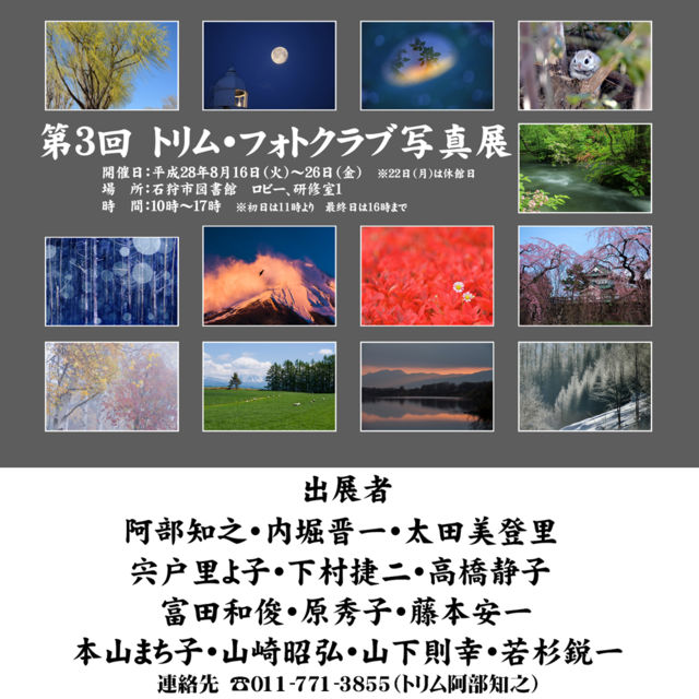 ¡ùÂ裳²ó¡¡¥È¥ê¥à¡¦¥Õ¥©¥È¥¯¥é¥Ö¼Ì¿¿Å¸¡ù ³«ºÅÆü¡§Ê¿À®£²£¸Ç¯£¸·î£±£¶Æü¡Ê²Ð¡Ë¡Á£²£¶Æü¡Ê¶â¡Ë ¾ì ¡¡½ê¡§Àмí»Ô¿Þ½ñ´Û¡¡¥í¥Ó¡¼¡¢¸¦½¤¼¼£± »þ ¡¡´Ö¡§£±£°»þ¡Á£±£·»þ ¡¡¡¡¢¨£²£²Æü¡Ê·î¡Ë¤ÏµÙ´ÛÆü ¡¡¡¡¢¨½éÆü¤Ï£±£±»þ¤è¤ê¡¡ºÇ½ªÆü¤Ï£±£¶»þ¤Þ¤Ç À§È󡢤´¹âÍ÷¤¯¤À¤µ¤¤¡£