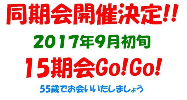 ¾¼Ï£³£·Ç¯ÅÙÀ¸¤Þ¤ì¤Î¡¡£±£µ²óÀ¸¤ÎƱ´ü²ñ¤ò¡¡³«ºÅ¤¤¤¿¤·¤Þ¤¹ 55ºÐ¤ÎÀáÌÜ¡¡³§¤µ¤ó¤È¤ª²ñ¤¤¤¤¤¿¤·¤Þ¤·¤ç¤¦ Àµ³Î¤ÊÆü»þ¤¬É½¼¨¤Ç¤¤Ê¤¤¤Î¤Ç¡¡Å¬Åö¤Ç¤¹¤«¡« £²£°£±£·Ç¯£¹·î½é½Ü¤Ë·èÄꤷ¤Æ¤¤¤Þ¤¹ ÂæÃæ¤Î³Ø±àº×¤ÎÆü¤Ë¡¡¹Ô¤¤¤Þ¤¹ Ãë¤Ï¡¡¹»¼ËÆâ¤ò¸«³Ø¤Ç¤¤ë¥Á¥ã¥ó¥¹¤Ê¤Î¤Ç¡¡ ¤³¤ÎÆü¤¬¤¤¤Ä¤Ê¤Î¤«¡¡¤ï¤«¤ê¼¡Âè¡¡ÄÉÊ䤤¤¿¤·¤Þ¤¹