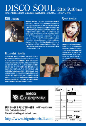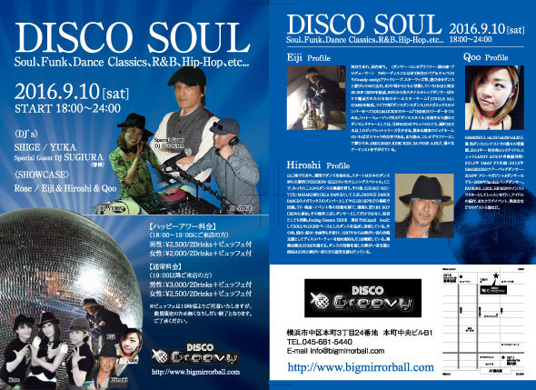 DISCO Groovy 9·îÂè2ÅÚÍËÆü¤Ï¡ÚDJ SHIGE¡õDJ YUKA¡Û¤Ë¤Æ¤ª¤Ê¤¸¤ß¹õ²»Ãæ¿´¤ÎÌë¤Ë¡¢ÀŲ¬¤è¤ê¡ÚDJ SUGIURA¡Û¤ò¥²¥¹¥È¤Ë·Þ¤¨¤µ¤é¤Ë¹õ¤¯¤ªÆÏ¤±¤·¤Þ¤¹♬ ¤½¤·¤ÆSHOWCASE¤Ë¡¢DANCE¶È³¦¤ÎÂç¸æ½ê¤Ç¤¢¤ë¡ÚEIJI¡õHIROSHI¡õQOO¡Û¤Î£³¿Í¤ÈÀŲ¬¤«¤é¡ÚROSE¡Û¤¬»²À¤³¤ÎÌ´¤Î¥³¥é¥Ü¥ì¡¼¥·¥ç¥ó¤ò³§Íͤɤ¦¤¾¤ª¸«Æ¨¤·¤Ê¤¯¡ª¡ª ¡Ú²»³Ú¡Û Soul¡¢Funk¡¢Dance Classics¡¢R&B¡¢Hip-Hop¡¢etc... ¡Ú³«ºÅ»þ´Ö¡Û 18¡§00¡Á24¡§00 ¡Ú¥Ï¥Ã¥Ô¡¼¥¢¥ï¡¼ÎÁ¶â / 18:00¡Á19:00¤Ë¤´ÍèŹ¤ÎÊý¡Û ÃËÀ¡§¡ï2,500/2Drinks¡Ü¥Ó¥å¥Ã¥Õ¥§ÉÕ ½÷À¡§¡ï2,000/2Drinks¡Ü¥Ó¥å¥Ã¥Õ¥§ÉÕ