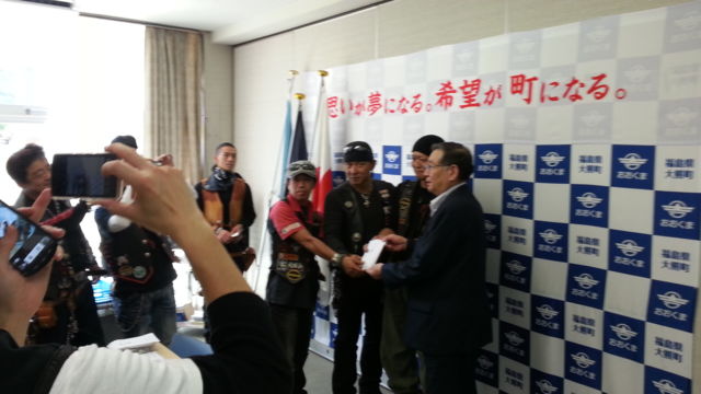 皆様、本年も大熊復興祈願パッチ購入の御協力を。 当ツーリング倶楽部では東日本大震災の半年後にあたる九月に福島原発のあった大熊町にバイク乗りの仲間の店舗での募金やクラブでの募金とともに、この義援金パッチの売上金全額を寄付しております。 このパッチは群嶺飛ツーに参加して頂いた方の気持ちで制作されておりますので、良く聞く経費を引い残りの金額寄付でなく、購入代金の全額を大熊町の町長様に直接手渡しに毎年行っています。 価格は 一枚 1000円 です。 パッチはOKAの手元にありますので何時でもは販売可能です。