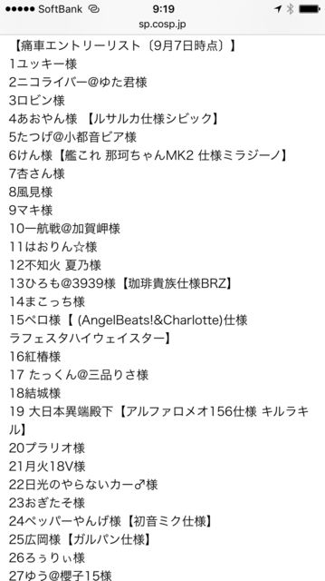 9月18日茨城県那珂市の茨城県植物園にて痛車&コスプレイベント開催します! 9月1日時点で33台エントリー頂いております。 痛車展示場所は園内ではなく、茨城県植物園の第5駐車場が園外にありますのでそこで展示します。 最大300台停められます^ ^ 関東での痛車イベントが年々少なっている中、少しでも復興して頂ければ嬉しいです♩ 【詳細】 http://sp.cosp.jp/event_info.aspx?id=136372 宜しくお願いします