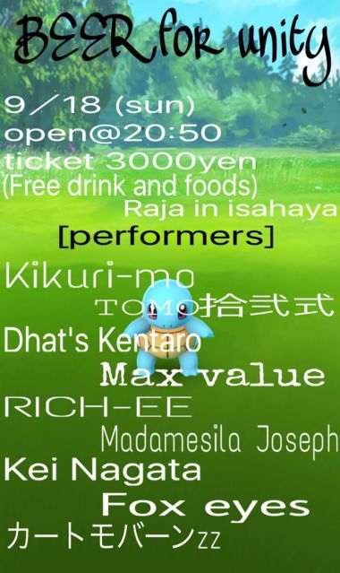 クラブイベント 飲み放題+バイキング、21時から26時 お一人様¥3000 DJメインで、ジャンルはディスコやEDM、途中弾き語りも2組あります