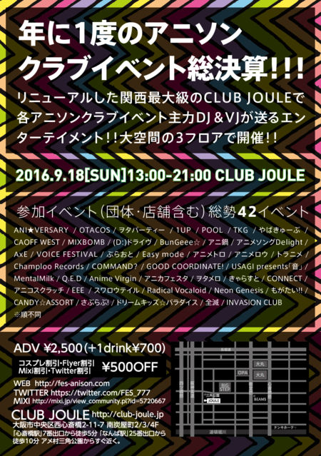 2016ǯ9·î18Æü(Æü) FES¡ã¥Õ¥§¥¹¡ä2016¤¬º£Ç¯¤â³«ºÅ¡ª¡ª 13:00 START @¿´ºØ¶¶club joule¤Ë¤Æ ´ØÀ¾¤Ç³èÌöÃæ¤Î¥¢¥Ë¥½¥óDJ¥¤¥Ù¥ó¥È¤¬Â罸¹ç¡ª ³Æ¥Õ¥í¥¢¤Ë³Æ¥¤¥Ù¥ó¥È¤òÂåɽ¤¹¤ëDJ¤¬½¸¤Þ¤ê ½ê°¥¤¥Ù¥ó¥È¤Î¥«¥é¡¼¤¢¤Õ¤ì¤ëÁª¶Ê¤ÇDJ¥×¥ì¥¤¤·¤Æ¤¯¤ì¤Þ¤¹¡ª Â絬ÌϤʲñ¾ì¤Ë¤è¤ë3¥Ö¡¼¥¹¤Ë²Ã¤¨¡¢°µÅÝŪ¤Ê²»¶ÁÀßÈ÷¡ª ¤½¤·¤Æ»²²ÃÃÄÂΤϲáµîºÇÂç¤Î¹ç·×42¥¤¥Ù¥ó¥È¡ª ´ØÀ¾·÷Æâ°Ê³°¤Ë¤âË̤«¤éÆî¤Þ¤Ç¾ÃÏÊý¤«¤é¤â¿¿ô»²²Ã¡ª Âç¶õ´Ö&3¥Õ¥í¥¢&ºÇ¹â²»¼Á¤ÇÁ÷¤ëÆüËܤÎʸ²½¤È¤â¤¤¤¨¤ë¥µ¥Ö¥«¥ë¥Á¥ã¡¼¥¨¥ó¥¿¡¼¥Æ¥¤¥á¥ó¥È¡ª 2016ǯ½©¡¢Ç¯¤Ë1Å٤δØÀ¾¥¢¥Ë¥½