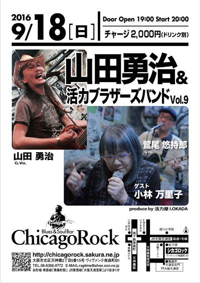 ¡Ö»³ÅÄͦ¼£¡õ³èÎϥ֥饶¡¼¥º¥Ð¥ó¥É¡×Vol.9 ¡ÁµÈÅÄÂóϺ¤Î²Î¤Î¿ô¡¹¤¬»³ÅÄͦ¼£¤Î²ÎÀ¼¤Çµ±¤¯¡Á ³«¾ì¡§19»þ¡¡³«±é¡§20»þ ¥Á¥ã¡¼¥¸¡§2000±ß+drink »³ÅÄͦ¼£:Vo ÏÉÈøÍª»ýϺ:G ¥²¥¹¥È:¾®ÎÓËüΤ»Ò Ì䤤¹ç¤ï¤»¡§06-6356-0772¡Ê¥·¥«¥´¥í¥Ã¥¯¡Ë Âçºå»ÔË̶èÅ·¿À¶¶2-5-15¡¡¥ô¥£¥ô¥¡¥ó¥ÆÆî¿¹Ä®¡¡B1 http://chicagorock.sakura.ne.jp/live/index.html