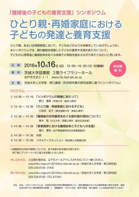 ³§¤µ¤ó¤ªµ×¤·¤Ö¤ê¤Ç¤¹¡¢Éû´ÉÍý¿Í¤ÎNOB¤Ç¤¹£í¡Ê¡²¡²¡Ë£í ¤³¤ÎÅÙ¡¢6·î¤ÎÎ¥º§¤Î»Ò¤É¤â¶¨²ñΩ¤Á¾å¤²¤ÎºÝ¤Ë¤ª±Û¤·¤¤¤¿¤À¤¤¤¿¡¢°ñ¾ëÂç³Ø¤ÎÌî¸ý¹¯É§ÀèÀ¸¤¬¡Ö¤Ò¤È¤ê¿Æ¡¦ºÆº§²ÈÄí¤Ë¤ª¤±¤ë»Ò¤É¤â¤Îȯã¤ÈÍܰé»Ù±ç¡×¤ò¥Æ¡¼¥Þ¤Ë¥·¥ó¥Ý¥¸¥¦¥à¤ò¹Ô¤¤¤Þ¤¹¡£ ¾·¤«¤ì¤ëÅÐÃżԤÎÊý¡¹¤â¡¢¤½¤ì¤¾¤ìÎ¥º§¤È»Ò¤É¤â¤Ë¤Ä¤¤¤Æ¤Î´Ø·¸¤òÀìÌç¤ò³è¤«¤·¤Æ¤ªÏäò¤¹¤ë¤½¤¦¤Ç¤¹¡£ »ä¤È¶¨²ñÂåɽ¤«¤Ä´ÉÍý¿Í¤ÎÏÂÉפµ¤ó¤â¡¢º£²óľÀܤΤª¾·¤Í¤«¤ê¤¤¤¿¤À¤¤¤¿¤¿¤á¡¢°ñ¾ë¤Î¿å¸Í¤Ø¹Ô¤Ã¤Æ¤Þ¤¤¤ê¤Þ¤¹¡£ ÅöÆü¤Ï¡¢²æ¡¹¤ÎÃÄÂΤΤ³¤È¤Ë¤Ä¤¤¤Æ¤â¾¯¤·¤Ð¤«¤ê¿¨¤ì¤Æ¤¯¤ì¤ë¤È¤Î¤ªÏäâʹ¤¤¤Æ¤ª¤ê