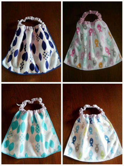 ハンドメイドのタオルエプロンです(*´∀`)♪ 首もとがゴムなので自分で脱ぎ着が出来ます!ゴムの入れ替えも可能です! 1枚400円 2枚750円 3枚1000円 送料は140円です!
