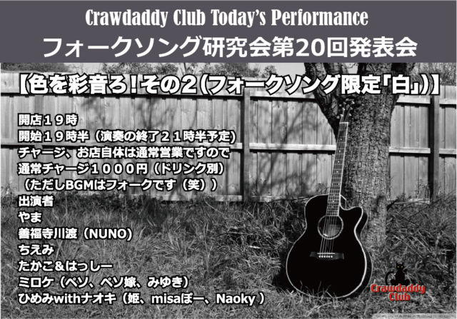 10/5 ËÜÆü¤Ï¡ÖÂ裲£°²ó¥Õ¥©¡¼¥¯¥½¥ó¥°¸¦µæ²ñȯɽ²ñ¡× µ¤·Ú¤Ë¤ªÎ©¤Á´ó¤ê¤¯¤À¤µ¤¤¤Þ¤»¡Á »²²Ã¤Î¤ß¤Ê¤µ¤Þ¤è¤í¤·¤¯¤ª´ê¤¤¤¤¤¿¤·¤Þ¤¹¡ª¡ª OPEN 19:00 START 19:30 CHARGE 1000±ß