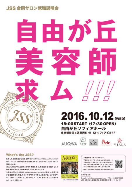 10/12(wed)¼«Í³¤¬µÖ(JSS)¹çƱ¥µ¥í¥ó½¢¿¦ÀâÌÀ²ñ ¡ù17ǯ´ÈþÍÆ³ØÀ¸¡¦´û´¸þ¤±¡ù ¼«Í³¤¬µÖ(JSS)¹çƱ¥µ¥í¥ó½¢¿¦ÀâÌÀ²ñ 10·î12Æü¡Ê¿å¡Ë18:00 START(17:30 OPEN)¡÷¼«Í³¤¬µÖ¥½¥Õ¥£¥¢¥Û¡¼¥ë¤Ë¤Æ¡¢ ¼«Í³¤¬µÖ¤Ë¤ªÅ¹¤ò¹½¤¨¤ë5¥µ¥í¥ó¤Ç¡¢¹çƱ¥µ¥í¥óÀâÌÀ²ñ¤ò³«ºÅ¤·¤Þ¤¹¡ª ¡ÚJSS¤È¤Ï¡Ä¡Û ¼«Í³¤¬µÖ¤Î³¹¤ò³èÀ²½¤µ¤»¤ë¤³¤È¤ò°ì¤Ä¤ÎÌÜŪ¤È¤·¤Æ³èư¤·¤Æ¤¤¤ë¡¢ ¼«Í³¤¬µÖ¤Î¥µ¥í¥ó¤Ç¹½À®¤µ¤ì¤¿¥æ¥Ë¥Ã¥È¤Ç¤¹¡£ ³èưÆâÍÆ¤Ï ¡¦JSS³Æ¥µ¥í¥ó¤Ë¤è¤ëµ»½ÑÊÙ¶¯²ñ ¡¦¥·¥ã¥ó¥×¡¼&¥È¥ê¡¼¥È¥á¥ó¥È¤Î³«È¯ ¡¦JSS¹çƱ»£±Æ²ñ ¡¦JSS¥¢¥·¥¹¥¿¥ó¥È¸òή²ñ ¡¦¶ÌÀî²Ö²ÐÂç²ñ¡¡¤Ê¤É