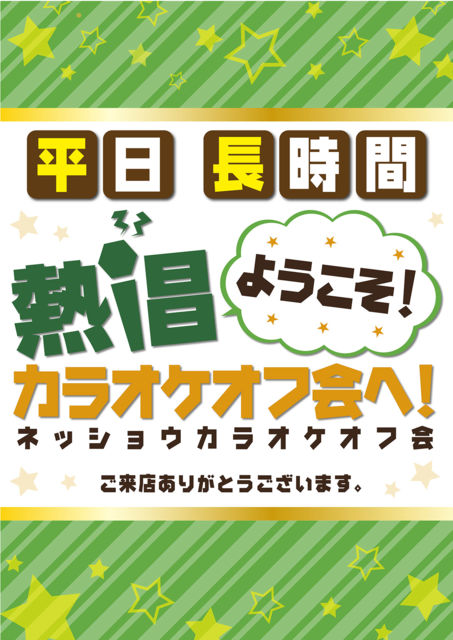 「熱唱カラオケ!★オフ会」〜平日長時間オフ会!!〜 久々の金曜開催です! 何時からでも参加表明OK! 平日はロングタイムなので、途中でおしゃべり部屋が出来たり♫ コラボしたり♫ 集まるメンバーによって、毎回色々な感じになってます\(^o^)/ 今回も、楽しくやりましょう〜〜〜!! 幹事のCDの曲も歌いますよ〜♫ ◎参加表明は、こちら(本トピック)へ☆彡 http://mixi.jp/view_event.pl?comm_id=6265702&id=80824227&comment_count=0 10月21日