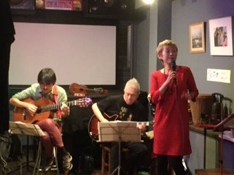 石川真奈美(vo)さん、山口友生(g)さん、天野丘(g)さんのトリオです。 石川さんは、ヴォーカルユニット"a・i"のメンバーとして、ご出演いただいています。 歌唱力に加えて、独自の歌の世界をお持ちです。ソリストとしての魅力も、十分堪能していただきたいと思います。 バックは2ギターです。それも、贅沢な贅沢な組み合わせ。 山口さんは、東大ジャズ研出身のアコースティックギターの名手。 天野さんは、実は、h.s.trashでデビューしたのです。教則本も書いている、今やベテランです。 雨の予報が出ていますが、雨の夜は