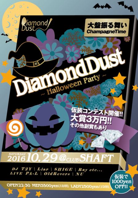 10·î¤È¸À¤¨¤Ð¤ä¤Ã¤Ñ¤ê¥Ï¥í¥¦¥£¥ó¤Ç¤¹¤Í 29Æü¤Ë¥Ñ¡¼¥Æ¥£¡¼³«ºÅ¤·¤Þ¤¹¤è¡¼ ²¾Áõ¤ò¤¹¤ë¤È1000yen¥ª¥Õ ¤â¤Á¤í¤ó²¾Áõ¥³¥ó¥Æ¥¹¥È¤ä¤Ã¤Á¤ã¤¤¤Þ¤¹ Âç¾Þ¾Þ¶â¤Ï30,000yen Éû¾Þ¤â¤¢¤ë¤Î¤ÇÀ§È󵤹礤Æþ¤ì¤ÆÁÀ¤Ã¤Á¤ã¤Ã¤Æ¤¯¤À¤µ¤¤ ¤ß¤ó¤Ê¤Ç¥ï¥¤¥ï¥¤³Ú¤·¤ß¤Þ¤·¤ç¤¦ »²²Ã´õ˾¤ÎÊý¤Ï´ÉÍý¿Í¤Î¹¨µ¯¤Þ¤ÇÏ¢Íí¤ò¤ª´ê¤¤¤·¤Þ¤¹ ²¾Áõ¤·¤Ê¤¯¤Æ¤â°Â¤¯»²²Ã¤Ç¤¤ë¥Á¥±¥Ã¥È¤ò¥²¥Ã¥È¤Ç¤¤Þ¤¹ ¡ØDiamondDust¡ÁHalloween Party¡Á¡Ù at.SHAFT 2016. 10/29¡Êsat¡Ë Open 22:30¡Á ¡Úticket¡Û