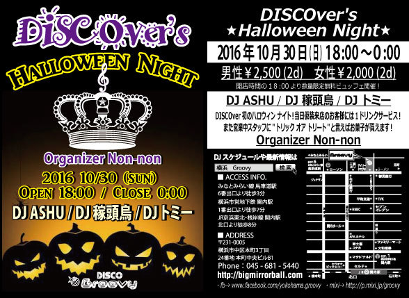 DISCOver vol.56 DISCOver's Halloween Night¡ª Ëè·îÂè°ìÆüÍËÆü³«ºÅ¤ÎDISCOver¤Ç¤¹¤¬¡¢º£Ç¯¤Ï¥¤¥ì¥®¥å¥é¡¼¤Ë¤âÂè¸ÞÆüÍËÆü¤Þ¤Ç¤¢¤ë¤È¤¤¤¦»ö¤Ç¡¢DISCOver½é¤Î¥Ï¥í¥¦¥£¥ó ¥Ê¥¤¥È¤ä¤Ã¤Á¤ã¤¤¤Þ¤¹¡ª ¥ª¡¼¥¬¥Ê¥¤¥¶¡¼Non-non¤â¤³¤ÎÆü¤Ð¤«¤ê¤Ï¶ÐÌ³Ãæ¤Ë¤Ï¸«¤»¤Ê¤¤Ëܵ¤¤Î²¾Áõ¤·¤Þ¤¹¡ª¾Ð ¤Þ¤¿¡¢ÅöÆü²¾Áõ¤Ç¤´ÍèŹ¤Î¤ªµÒÍͤÏ1¥É¥ê¥ó¥¯¥µ¡¼¥Ó¥¹¤·¤Þ¤¹¤Î¤Ç¡¢À§Èó³§Íͻפ¤»×¤¤¤Î¥³¥¹¥Á¥å¡¼¥à¤Ç¤´ÍèŹ²¼¤µ¤¤^ ^ °ìÈÖµ¤¹ç¤¤¤ÎÆþ¤Ã¤¿²¾Áõ¤ò¤·¤ÆÍè¤Æ¤¯¤ì¤¿Êý¤Ë¤Ï¡¢Âç¾Þ¤ÈÃפ·¤Þ¤·¤Æ¥ª¡¼¥¬¥Ê¥¤¥¶¡¼¤è¤ê¼¡²ó¤ÎDISCOver ¥Ú¥¢Æþ¾ì̵ÎÁ·ô¤ò¥×¥ì¥¼¥ó¥È¤·¤Þ¤¹¡ª ²¾Áõ