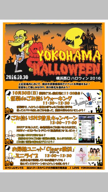 Ãϸµ²£ÉÍ¤Ç¥Ï¥í¥¦¥£¥ó¥¤¥Ù¥ó¥È¤ò¤ä¤í¤¦¡ª ²£ÉͱØÀ¾¸ý¤ÇÂ絬ÌÏ¤Ê¥Ï¥í¥¦¥£¥ó¥¤¥Ù¥ó¥È¤¬¹Ô¤ï¤ì¤Þ¤¹¡£ ²¾Áõ¥Ñ¥ì¡¼¥É¤ò»Ï¤á¡¢±éÁդʤɤâ¹Ô¤ï¤ì¤ÆÀ¾¸ý¤Ï²¾Áõ¤·¤¿¿Í¤¿¤Á¤ÇÆø¤ä¤«¤Ë¡ª ¤½¤ÎÃæ¤Î°ì¤Ä¤È¤·¤Æ¡¢²¾Áõ¤·¤Æ²£Éͱؤò¥¥ì¥¤¤Ë¤¹¤ë¥´¥ß½¦¤¤¥¤¥Ù¥ó¥È¤ò³«ºÅ¡£ ¥Ï¥Þ¥é¥Ö¤â±¿±Ä¤Î°ìÍã¤òô¤Ã¤Æ»²²Ã¤·¤Þ¤¹¡£ ²È²¤ä¤ªÍ§Ã£¤Ç¤Î»²²Ã¤â´¿·Þ¡£²¾Áõ¤Ï¤ª¹¥¤¤Ê¤â¤Î¤Ç¡°¡° ¤ª°ì¿Í¤Ç¤â²¾Áõ¤ò°ìÉôÂߤ·½Ð¤·¤â²Äǽ¤Ç¤¹¡£ ¤¼¤Ò¡¢¸æ»²²Ã²¼¤µ¤¤¡£ ¢§¥¤¥Ù¥ó¥È̾ YOKOHAMA HALLOWEEN 2016¡Ö²¾Áõde¥¯¥ê¡¼¥ó¥¦¥©¡¼¥¥ó¥°¡× ¡Ê²£ÉÍÀ¾¸ý¤Î¥Ï¥í¥¦¥£¥ó¥¤¥Ù¥ó¥È¤ÎÁí¾Î