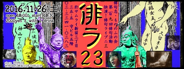 ÆÈ±é¡ªÇжç¥é¥¤¥Ö23¡¡(ά¾ÎŽ¢ÇÐ¥é23Ž£¡ÖHAILA-23rd¡×) Ëèǯ¹±Îã¡¢ÇжçϯÆÉ¤ÎËǯº×Ž¢ÇХ鎣¤Îµ¨Àá¤È¤Ê¤ê¤Þ¤·¤¿¡£ 1998ǯ¤Î3·î¤Ë»Ï¤á¤Æ¡¢ÄÌ»»³«ºÅ²ó¿ô23²óÌܤˤʤê¤Þ¤¹¡£ ¡¡2016.11.26(ÅÚ)¡¡ 18:00³«¾ì¡¢18:30³«±é 2000±ß(1drinkÉÕ) ¡¡Èô¤ÓÆþ¤ê´¿·Þ¡ª ¢£½Ð±é¼Ô(½Ð±é½ç) ¡¡¡µÜùõÆó·ò¡¡(Å·¶é²¾ÌÌÇжçÅܹæ) Miyazaki-Jiken ¡¡¢µ×αÁǻҡ¡(ÀîÌøÏ¯ÆÉ) Hisatome-Motoko ¡¡¡¡¡¡¡¡¡¡¡¡¡¡¡¡¡ÁÈô¤ÓÆþ¤ê¡¡(Çж礫ÀîÌøÏ¯ÆÉ¤ò) ¡¡£¿À»³¤Æ¤ó¤¬¤¤¡¡(°¥½¥¤È³ê·Î¤ÎÇÐÍ¥) Kamiyama-Tengai ¡¡¤¥®¥Í¥Þ¡¡(ÇÐ¥é¤Î½÷²¦) Ginema ¢¦faceboo