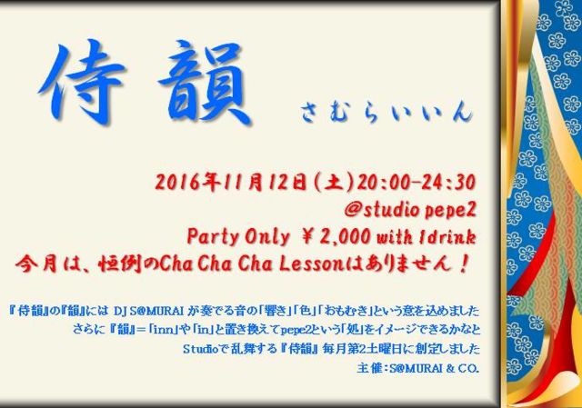 November 13th. (Sun) 19:30 - 22:00