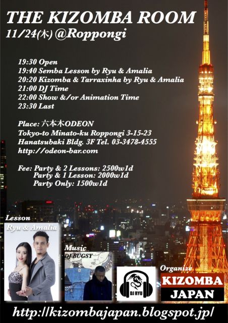 The Kizomba Room is the Longest-Regular Kizomba, Semba & Tarraxinha Lesson & Social in roppongi area, held every 2nd and 4th thursday.