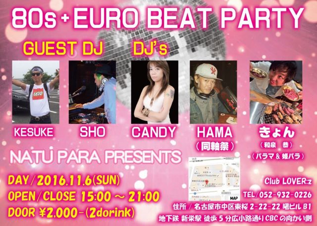 11/6¡ÊÆü¡Ë15»þ¤«¤é¡¢ ²û¥Ñ¥é¥×¥ì¥¼¥ó¥Ä 80's ¡Ü EUROBEAT ¥¹¥Ú¥·¥ã¥ë¡ª ¥¯¥é¥Ö¥é¥Ð¡¼¥º¤Ë¤Æ¡£ dj¤Ï¡¢¥×¥é¥¹ HAYATO µ¹¤·¤¯¤ª´ê¤¤¤¤¤¿¤·¤Þ¤¹¡ª