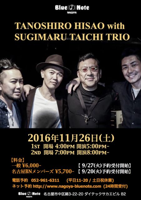 ¥¯¥¤¥ó¥·¡¼¥¸¥ç¡¼¥ó¥º¤¬Ç§¤á¤¿ °Ûü»ù¥µ¥Ã¥¯¥¹¥×¥ì¡¼¥ä¡¼ÅÄÌî¾ë¼÷ÃË ¥Ë¥å¡¼¥è¡¼¥¯¡¦¥«¡¼¥Í¥®¡¼¥Û¡¼¥ë¤¬Ç§¤á¤¿ ³×Ì¿»ù¥Ô¥¢¥Ë¥¹¥È¿ù´ÝÂÀ°ì Èà¤é¤¿¤Á¤«¤éͯ¤½Ð¤ëº²¤Î²»¤Ï ±§Ãè¤Î¶Á¤(ÇÈÆ°) ¤À¤«¤é¿Í¡¹¤Î¿´¤È¿ÈÂΤò̥λ¤¹¤ë ²¿¤«Ä¾´¶Åª¤Ê¤â¤Î¤ò ¤¢¤Ê¤¿¤â´¶¤¸¤ë¤Î¤Ê¤é ¾¯¤·¤Îͦµ¤¤ò»ý¤Ã¤Æ ¤³¤Îµ®½Å¤Ê°ìÌë¤Î¾Ú¿Í¤Ë ÅÄÌî¾ë¼÷ÃË with ¿ù´ÝÂÀ°ì trio Æü»þ : 11·î26Æü (ÅÚ) ¡¡¡¡¡¡1st 16»þ00ʬ ³«¾ì / 17»þ00ʬ ³«±é ¡¡¡¡¡¡2nd 19»þ00ʬ ³«¾ì / 20»þ00