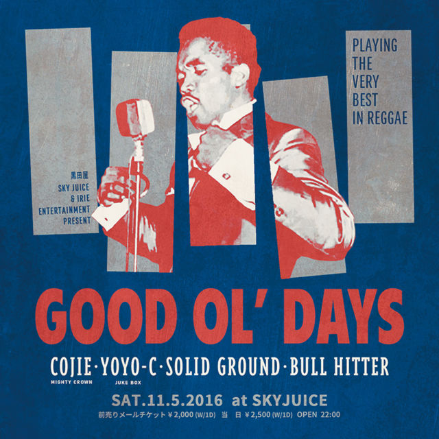 ¹ðÃμºÎ餷¤Þ¤¹¡£ ¢¨Ë¶¶SKY JUICE¤Ë¤Æ³«ºÅ¡ª -¹õÅIJ° & SKY JUICE & IRIE ENTERTAINMENT Presents- ¡ÖGOOD OL' DAYS¡× ¡ÉPLAYING THE VERY BEST IN REGGAE¡É <³«ºÅÆü»þ> 2016ǯ11·î5Æü(ÅÚ) OPEN/22:00 <²ñ¾ì> SKY JUICE °¦Ãθ©Ë¶¶»Ô¾¾ÍÕÄ®1-14 B1 0532-54-4554 <ÎÁ¶â> Mail Ticket:2,000yen(1DÉÕ) Door:2,500yen(1DÉÕ) Mail Ticket Adress : skyjuice0001@yahoo.co.jp ¢¨¥á¡¼¥ë¥Á¥±¥Ã¥È¼èÆÀ´ü¸Â¡§2016ǯ11·î4Æü(¶â) <½Ð±é> ¡¦COJIE¡¡from MIGHTY CROWN ¡¦YOYO-C from JUKE BOX ¡¦SOL