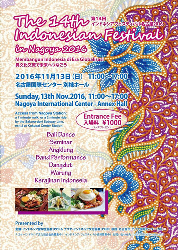 ¢¨º£Ç¯¤â¥¤¥ó¥É¥Í¥·¥¢¥Õ¥§¥¹¥Æ¥£¥Ð¥ë¤ò³«ºÅ¤·¤Þ¤¹¡£ ¥»¥ß¥Ê¡¼¹Ö±é¤äÅÁÅýŪ¤ÊÉñÍ٤ʤɤΥ¹¥Æ¡¼¥¸¤È¿ô¡¹¤ÎÈþÌ£¤·¤¤ÎÁÍý¤¬¤¢¤ê¡¢Å쳤ÃÏÊý¤Ëºß½»¤¹¤ë¥¤¥ó¥É¥Í¥·¥¢¿Í¤ä¥¤¥ó¥É¥Í¥·¥¢¤ò°¦¤¹¤ë¿Í¤¿¤Á¤¬°ìƲ¤Ë²ñ¤·À¹¤ê¾å¤²¤Þ¤¹¡£ ¤¼¤Ò¤ªÍ§Ã£¤òͶ¤Ã¤Æ¤´Íè¾ì¤¯¤À¤µ¤¤¢ö ¢£Æü»þ¡§2016ǯ11·î13Æü¡ÊÆü¡Ë¡¦11.00¡Á17.00 ¢£¾ì½ê¡§Ì¾¸Å²°¹ñºÝ¥»¥ó¥¿¡¼¡¦ÊÌÅï¥Û¡¼¥ë ¢£Æþ¾ìÎÁ¡§1000±ß¡¡¡ùµÇ°¥Ð¥Ã¥Â¿ÊÄè ¢£¼çºÅ¡§¥Ê¥´¥ä¡¦¥¤¥ó¥É¥Í¥·¥¢Ê¸²½¶¨²ñ¡ÊPKIN)¡¢¥¤¥ó¥É¥Í¥·¥¢Î±³ØÀ¸¶¨²ñ̾¸Å²°¡ÊPPInagoya¡Ë