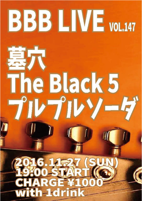 BBB LIVE 147 2016.11.27 (SUN) 19:00 START CHARGE \1000 (w/ 1drink) ¡ù¡¡Êè·ê ¡ù¡¡The Black 5 ¡ù¡¡¥×¥ë¥×¥ë¥½¡¼¥À