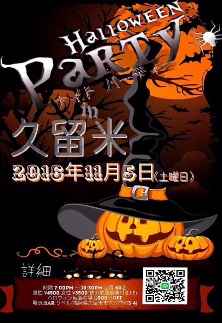 こんにちは(>人<;) 人の輪会の向島です。( *`ω´) この前のイベントは 60名以上の方が参加してくださり すごく盛り上がりました。( ´ ▽ ` )ノ ありがとうございました(^o^)/ さて今回は久留米で ハロウィンパーティーを 開催しちゃいます(>人<;) ハロウィンパーティーといっても 人と人の輪を広げるのが メインの飲み会です。( ´ ▽ ` )ノ ただハロウィンなので いろんな特典がありますよΣ(・□・;) 串カツやシャンパンも 御用してますので 楽しみにしててください\(//∇//)\ 詳細は画像にもありますよ(>人<;) こち