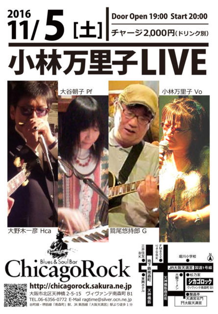 ¾®ÎÓËüΤ»Ò¥½¥í¥é¥¤¥Ö ¡ÁÂçÌîÌÚ°ìɧ¤µ¤ó¡¢Âçëī»Ò¤µ¤ó¤ò·Þ¤¨¤Æ¡¢²¼¥Í¥¿¡¦»þ»ö¥Í¥¿¡¢¤½¤·¤Æ¥Ö¥ë¡¼¥¹¤ò¤ªÆÏ¤±¤·¤Þ¤¹¡Á ³«¾ì¡§19»þ¡¡³«±é¡§20»þ ¥Á¥ã¡¼¥¸¡§2000±ß+drink ¾®ÎÓËüΤ»Ò:Vo ÏÉÈøÍª»ýϺ:G ÂçÌîÌÚ°ìɧ:Hca Âçëī»Ò:Pf Ì䤤¹ç¤ï¤»¡§06-6356-0772¡Ê¥·¥«¥´¥í¥Ã¥¯¡Ë Âçºå»ÔË̶èÅ·¿À¶¶2-5-15¡¡¥ô¥£¥ô¥¡¥ó¥ÆÆî¿¹Ä®¡¡B1 http://chicagorock.sakura.ne.jp/live/index.ht