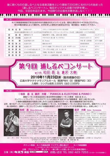 11·î23ÆüÅì¹Åç¤Ç¡Ö¾¾Åľ»&ÁÒÂôÂç¼ù¥Ç¥å¥ª¥³¥ó¥µ¡¼¥È¡ª¡× ¾»¤µ¤ó¤Ï¥Ô¥¢¥Ë¥«¤È¡¢µ×¤·¤Ö¤ê¤Ë¥¨¥ì¥¯¥È¡¼¥ó¤âÃÆ¤«¤ì¤Þ¤¹¡ª ¡¡¡¡¡¡¡¡(Æ»¡¦¥¢¥ó¥À¥ë¥·¥¢¤òͽÄê) Âè9²óÆ»¤·¤ë¤Ù¥³¥ó¥µ¡¼¥È Âè1Éô¥¥Ï¥é³Ú´ïÀ¸Å̤µ¤ó(P¡¦El) Âè2Éô¾¾Åľ»&ÁÒÂôÂç¼ù(El¡¦P¡¦¥Ô¥¢¥Ë¥«) 11/23(¿å¡¦º×)16:00¥¹¥¿¡¼¥È ¹ÅçÂç³Ø¥µ¥¿¥±¥á¥â¥ê¥¢¥ë¥Û¡¼¥ë ¤ªÌä¹ç¤»:082-423-7253 ¥¥Ï¥é³Ú´ï