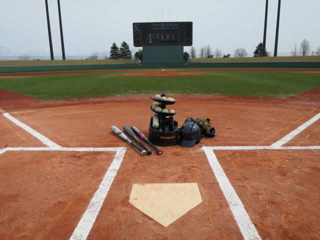 日時:11月23日(水・祝)13:00〜17:00・・・4時間 場所:アルペンスタジアム(富山市民球場) 〔住所〕富山市下飯野30-1 〔TEL〕(076)451-0900 ←ナビ利用の方はこの番号を入力してね! 会費:500円 <練習・体験メニュー> 1、キャッチボール ・・・ 2人1組で相互に投球・捕球を繰り返します。 2、ピッチャー体験 ・・・ マウンドからキャッチャーに向かって投げます。 3、ティーバッティング ・・・ バッティングティーを使った練習です。 4、トスバッティング ・・・ 球出しマシン(