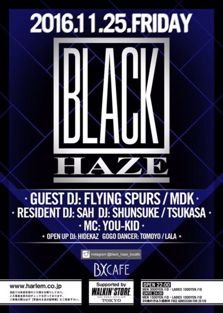 毎週金曜!!「BORN FREE/BLACK HAZE」@HARLEM/BX CAFE ★★★★★ エントランスにて「ユキワンのゲストでブラックヘイズ」とお伝え頂ければ、何名様でもゲスト料金にてご入場頂けます! お気軽にご利用下さい! ★★★★★ ☆☆☆☆☆ または、メッセージ頂ければ個別のゲストもお取り致します! 代表者名とだいたいの人数をメッセージ下さい! 折り返しメッセージ致します! ☆☆☆☆☆ ※ゲスト料金※ 24時まで→男性1500円/1D+1FOOD,女性1000円/1D+1FOOD 24時以降→男性1500円/1D,女性1000円/2D 20歳→無料