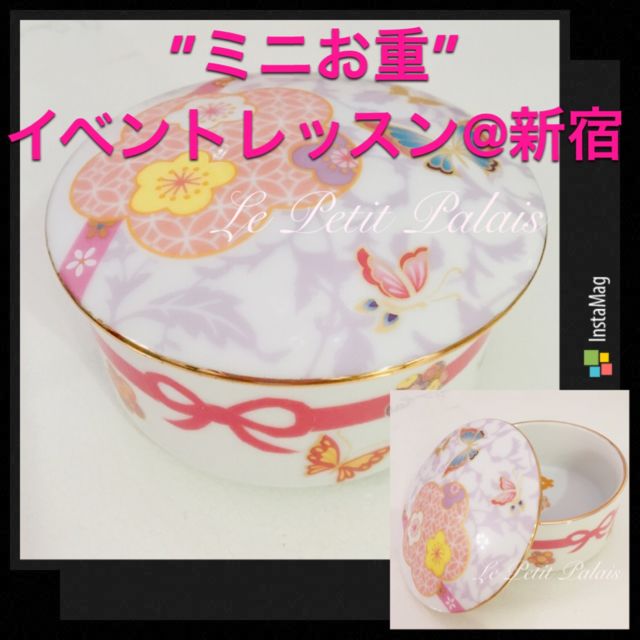 【限定10名様】お写真の可愛い”ミニのお重”をお作りいただく1dayレッスン参加者の募集です♡ 美Premium掲載!東京恵比寿・広尾のお稽古サロンLe Petit Palaisルプティパレ×クリナップ東京様とのスペシャルコラボレーションのポーセラーツお正月レッスン! デザインは、お写真以外にお好きなものを組み合わせてお作りいただけます♪ 特殊な絵付け用シールを使うので、誰でも簡単! しかも、仕上がりも綺麗! サロン主宰自ら、マル秘テクニックもお伝え致します。 こちらのレッスンご受講いただきました方は、サロンへの入会