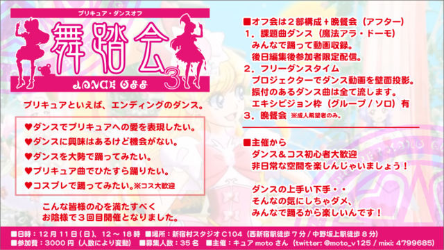 ¤ß¤Ê¤µ¤ó¤´¤¤²¤ó¤è¤¦¡ª ¼çºÅ¤Î£í£ï£ô£ï¡Ê¤â¤È¡Ë¤È¿½¤·¤Þ¤¹¡£ ¢£ÉñƧ²ñ¤Ø¤Î¤ªÍ¶¤¤¢£ ¥×¥ê¥¥å¥¢¤È¤¤¤¨¤Ð¡¢¥¨¥ó¥Ç¥£¥ó¥°¤Î¥À¥ó¥¹¡£ ¤½¤·¤Æ¡¦¡¦ ¢¡¥À¥ó¥¹¤Ç¥×¥ê¥¥å¥¢¤Ø¤Î°¦¤òɽ¸½¤·¤¿¤¤¡£ ¢¡¥À¥ó¥¹¤Ë¶½Ì£¤Ï¤¢¤ë¤±¤Éµ¡²ñ¤¬¤Ê¤¤¡£ ¢¡¥À¥ó¥¹¤òÂçÀª¤ÇÍ٤äƤߤ¿¤¤¡£ ¢¡¥¢¥Ë¥¯¥é¤À¤ÈÍÙ¤ê¤ê¤Ê¤¤¡£ ¢¡¥³¥¹¥×¥ì¤ÇÍ٤äƤߤ¿¤¤¡£ ¤½¤ó¤Ê³§Íͤο´¤òËþ¤¿¤¹¤Ù¤¯¡¢¤ª±¢Íͤǣ³²óÌܤγ«ºÅ¤È¤Ê¤ê¤Þ¤·¤¿¡£ ¤Þ¤¿¥¢¥Õ¥¿¡¼¤È¤·¤ÆÈÕ»Á²ñ¤â¤´ÍѰÕÃפ·¤Þ¤·¤¿¤Î¤Ç¡¢¥×¥ê¥È¡¼¥¯¤ò³Ú¤·¤ß¤Þ¤·¤ç¤¦¡ª ¢£¥ª¥Õ²ñ¤Ï£²Éô¹½À® £±¡¥²ÝÂê¶Ê¥À¥ó¥¹¡ÊËâË¡¥¢¥é¡¦