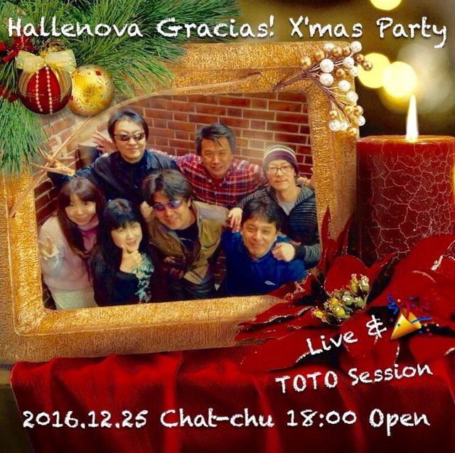 ¥¹¡¼¥Ñ¡¼¥Ü¡¼¥«¥ê¥¹¥È¡Ö¥Ï¥ì¥ë¡×Ψ¤¤¤ëHallenova Gracias!¤Î¥¯¥ê¥¹¥Þ¥¹¥Ñ¡¼¥Æ¥£¡¼Live¡õTOTO¥»¥Ã¥·¥ç¥ó¡ª 2016ǯ12·î25Æü(Æü) 18:00¡¡OPEN 18:30¡Á¥Ï¥ì¥Î¥Ð1st¥¹¥Æ¡¼¥¸ 19:10¡ÁTOTO¥»¥Ã¥·¥ç¥ó 20:50¡Á¥Ï¥ì¥Î¥Ðsnd¥¹¥Æ¡¼¥¸ Charge¡ï2,500 1Drink+ÆÃÀ½X'mas¥×¥ì¡¼¥ÈÉÕ¤ ¢¨´°Á´¤´Í½ÌóÀ©¤È¤Ê¤ê¤Þ¤¹¡£ ¢¨»ÄÀʶϤ«¡ª¤È¤Î»ö¤Ç¤¹¤Î¤Ç¤´´õ˾¤ÎÊý¤Ï¥á¥Ã¥»¡¼¥¸¤ò¤ª´ê¤¤¤¤¤¿¤·¤Þ¤¹¡£ TOTO¥»¥Ã¥·¥ç¥ó¶Ê 1.Rosanna 2.You are the flower 3.I can't stop loving you 4.Pamela 5.I won't hold you back 6.Geogy Porgy 7.Africa 8
