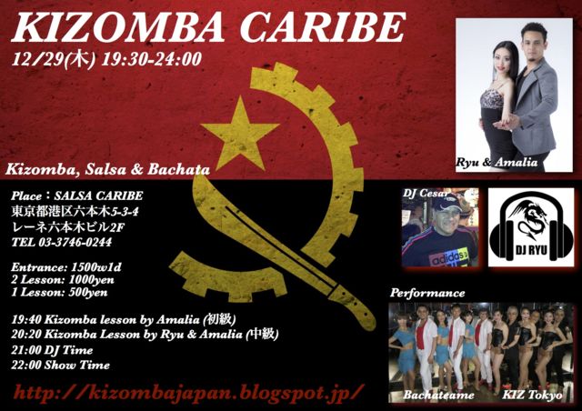 Kizomba social in Roppongi famous latin club SALSA CARIBE. We also play salsa and bachata.