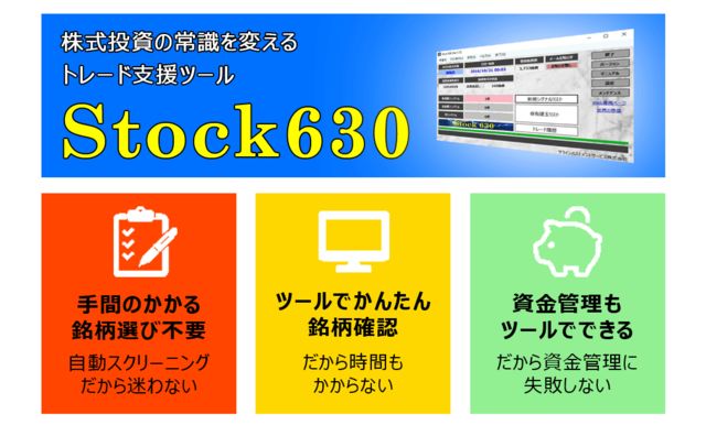 ºòǯ9·î¤ÎÈÎÇ䳫»Ï°ÊÍè¡¢¥Ð¥Ã¥¯¥Æ¥¹¥È°Ê¾å¤Î À®ÀÓ¤ò¼ý¤á¤Æ¤¤¤ë¡¢¡È80¡ó°Ê¾å¤Î¹â¾¡Î¨¡É³ô¼°¥È¥ì¡¼¥É»Ù±ç¥Ä¡¼¥ë ¡ØStock630¡Ù¡£ 1·î29Æü(Æü)̾¸Å²°¤Ø¡¢ ¥³¥ó¥Æ¥ó¥Ä¥Û¥ë¥À¡¼ËÌÀľÀܳ§ÍͤˡØStock630¡Ù ¤Î¤´ÀâÌÀ¤Ë¤ª»Ç¤¤¤·¤Þ¤¹¡£ ¥Æ¥ì¥Ó¥â¥Ë¥¿¡¼¤ò¸«¤Ê¤¬¤é¡¢ ¡ØStock630¡Ù¤Î¥¢¥×¥ê¥á¥¤¥ó¥Õ¥©¡¼¥à¤ò¼ÂºÝ¤Ë µ¯Æ°¤µ¤»¤Æ¡¢ÁàºîÊýË¡¤äÌÃÊÁÁªÄê¤Î¥³¥Ä¤òľÅÁ¤¤¤¿¤·¤Þ¤¹¡£ ¾¯¿Í¿ô¤Ç¤¹¤Î¤Ç¡¢µ¤·ó¤Í¤Ê¤¯¡¢Ê¹¤¤¿¤¤¤³¤È¤òËÌÀî¤Ë ¥É¥ó¥É¥ó¤Ö¤Ä¤±¤Æ¤¯¤À¤µ¤¤¡£ ¸æ¼ÁÌä¤Ë´Ø¤·¤Æ¤Ï¡¢ÇäÇã¥í¥¸¥Ã¥¯°Ê³°¤Ï¤É¤ó¤Ê¤³¤È