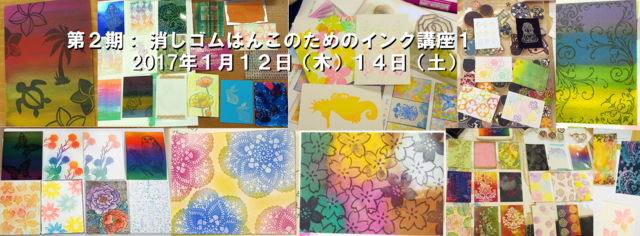 詳細、お申し込みはこちらです。 http://ameblo.jp/parallel-stamp/entry-12229039152.html 一般社団法人JESCA日本イレイサースタンプ協会さん企画による、 マジカルスタンプテクニック 第2期「消しゴムはんこのためのインク講座【1】 を開催させて頂くこととなりました。 おかげさまで、当講座はご好評をいただき、大阪出張講座および、今回の第2期も開催させていただくことになりました。 この講座は、3回のコースで、おもにツキネコ社のインクを使い、消しゴムはんこ作家、講師、愛好家などの方、またラバースタンプを使った作品を作