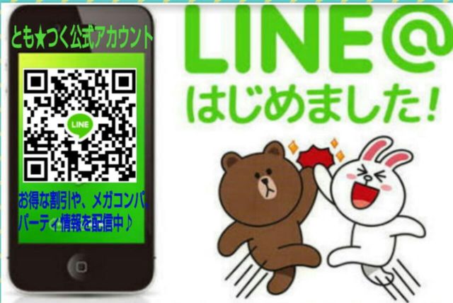 【1月のとも★つく募集中イベント】 ≪若手社長さん&役職さんとエグゼクティブパーティ♪≫ ★2017年1月28日(土) ★19時〜21時 (途中参加、途中退場自由) ★梅田 ★飲み放題&フード 【沢山の異性とお話しやすい、ブュッフェ式の半立食フリーパーティです♪】 ☆男性 5400円 ☆女性(20〜39歳) 4400円 ≪とも★つく公式LINEお友達登録ありの皆様♪≫ ☆男性 4900円 ☆女性 3900円 【とも★つく公式LINEアカウントでは、パーティやメガコンパ、お得な割り引き情報を配信中♪】 ≪お申込方法≫ とも☆つくLINE公式アカウント(ID tomo-tuku