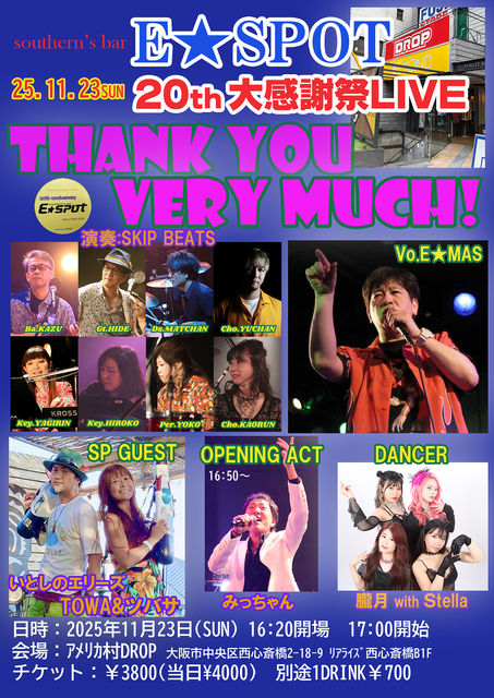 Íè¤ë¡¢£±£±·î£²£³Æü¡ÊÆü¡Ë¤Ë¡¢E¡úSPOT£²£°¼þǯ¤òµ­Ç°¤·¤Þ¤·¤Æ¡¢¥é¥¤¥Ö¤ò¹Ô¤¦±¿¤Ó¤È¤Ê¤ê¤Þ¤·¤¿exclamation ¡ß2 ¥¿¥¤¥È¥ë¤Ï¡Ä ¡ÖE¡úSPOT20thÂç´¶¼Õº×LIVE¡¡THANK YOU VERY MUCH!¡× ¤¢¤¨¤Æ¡¢VERY¤Ë¤·¤¿¤Î¤Ï¡¢¥«¥¸¥å¥¢¥ë¤Ë¤¸¤ã¤Ê¤¯ÃúÇ«¤Ë¤¢¤ê¤¬¤È¤¦¤´¤¶¤¤¤Þ¤¹¤òÅÁ¤¨¤¿¤«¤Ã¤¿¤«¤é(*^-^*) ÂçÈ¢¤Ç¤Î¥é¥¤¥Ö¤Ï¡¢¤Û¤ó¤È¤Ë¤³¤ì¤¬ºÇ¸å¤È¤Ê¤ê¤Þ¤¹¡£ ¤¼¤Ò¡¢¤ªÍ¶¤¤¹ç¤ï¤»¤Î¤¦¤¨¡¢¤ª±Û¤·²¼¤µ¤¤¡ª¡ª ÌÞÏÀ¡¢¥µ¥¶¥ó¡Ê¥½¥í´Þ¤à¡Ë¤Î¶Ê¥ª¥ó¥ê¡¼¤Ç¤¹♬ ¤·¤«¤â¡¢1978ǯ¤«¤é2025ǯ¤Þ¤Ç¿·µì¼è¤ê·¤¨¤Þ¤·¤¿¡ª ¤½¤ì¤Ë¡¢E¡úSPOT¤Ç¤¹¤«¤é(¾Ð)¡¢ÄêÈֶʤÀ¤±¤¸¤ã¤Ê¤¯¡¢¤³¤ó¤Ê¤ó¤ä¤ë