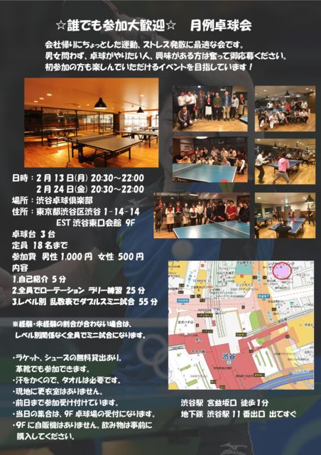 ²ñ¼Òµ¢¤ê¤Ë¤Á¤ç¤Ã¤È¤·¤¿±¿Æ°¡¢¥¹¥È¥ì¥¹È¯»¶¤ËºÇŬ¤Ê²ñ¤Ç¤¹¡£ Ã˽÷Ìä¤ï¤º¡¢Âîµå¤¬¤ä¤ê¤¿¤¤¿Í¡¢¶½Ì£¤¬¤¢¤ëÊý¤Ïʳ¤Ã¤Æ¸æ±þÊ礯¤À¤µ¤¤¡£ ¤´Ìµº»ÂÁ¿¶¤ê¤Ë³«ºÅ¡£ ½é»²²Ã¤ÎÊý¤â³Ú¤·¤ó¤Ç¤¤¤¿¤À¤±¤ë¥¤¥Ù¥ó¥È¤òÌܻؤ·¤Æ¤¤¤Þ¤¹¡£¢ö Æü»þ¡§2·î13Æü(·î) 20:30¡Á22:00 ¾ì½ê¡§½ÂëÂîµå¶æ³ÚÉô ½»½ê¡§ÅìµþÅÔ½Âë¶è½Âë1-14-14 EST½ÂëÅì¸ý²ñ´Û 9F ½Âë±Ø µÜ±×ºä¸ýÅÌÊ⣱ʬ Ãϲ¼Å´ ½Âë±Ø11Èֽиý ½Ð¤Æ¤¹¤° ÂîµåÂæ 3Âæ Äê°÷¡¡18̾ »²²ÃÈñ ÃËÀ 1,000±ß¡¡½÷À 500±ß ÆâÍÆ 1.¼«¸Ê¾Ò²ð 5ʬ 2.Á´°÷¤Ç¥í¡¼¥Æ¡¼¥·¥ç¥ó ¥é¥ê¡¼Îý½¬ 30ʬ 3