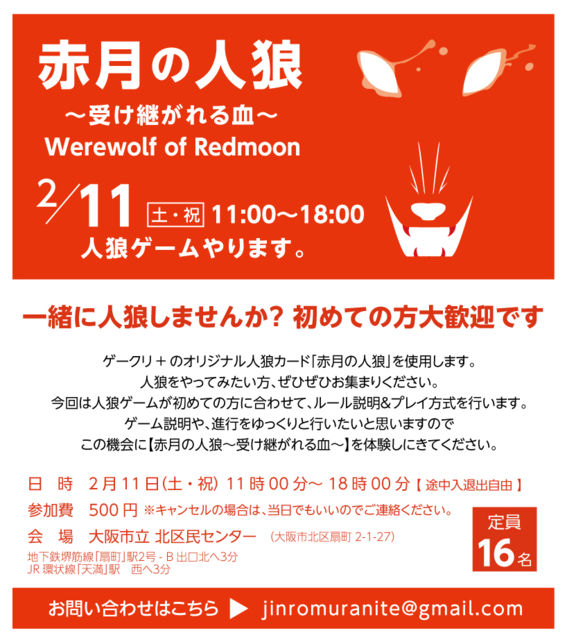 2017ǯ½é¤ÎÀÖ·î¤Î¿Íϵ²ñ³«ºÅ¤·¤Þ¤¹¡ª ÀÖ·î¤Î¿Íϵ¤ò½é¤á¤Æ¥×¥ì¥¤¤¹¤ëÊý¤Ë¤âÃúÇ«¤Ë¶µ¤¨¤Þ¤¹¡ª ¥²¡¼¥¯¥ê+¤Î¥ª¥ê¥¸¥Ê¥ë¿Íϵ¥«¡¼¥É¡ÖÀÖ·î¤Î¿Íϵ¡×¤ò»ÈÍѤ·¤Þ¤¹¡£ ¿Íϵ¤ò¤ä¤Ã¤Æ¤ß¤¿¤¤Êý¡¢¤¼¤Ò¤¼¤Ò¤ª½¸¤Þ¤ê¤¯¤À¤µ¤¤¡£ ¤³¤Îµ¡²ñ¤Ë¡ÚÀÖ·î¤Î¿Íϵ¡Á¼õ¤±·Ñ¤¬¤ì¤ë·ì¡Á¡Û¤òÂ賤·¤Ë¤¤Æ¤¯¤À¤µ¤¤¡£ ¡úÆü»þ¡¡2/11¡ÊÅÚ¡¦½Ë¡Ë11:00¡Á18:00¡ÚÅÓÃæÆþÂà½Ð¼«Í³¡Û ¡ú¾ì½ê¡¡Âçºå»ÔΩ Ë̶è̱¥»¥ó¥¿¡¼ ¡¡Âçºå»ÔË̶èÀðÄ®2-1-27¡ÊTEL:06-6315-1500¡Ë ¡ú¥¢¥¯¥»¥¹ Ãϲ¼Å´ºæ¶ÚÀþ¡ÖÀðÄ®¡×±Ø£²¹æ- B½Ð¸ýË̤أ³Ê¬ JR´Ä¾õÀþ¡ÖÅ·Ëþ¡×±Ø¡¡À¾¤Ø£³Ê¬ ¡ú»²²ÃÈñ¡¡500±ß ¢¨»²²Ã